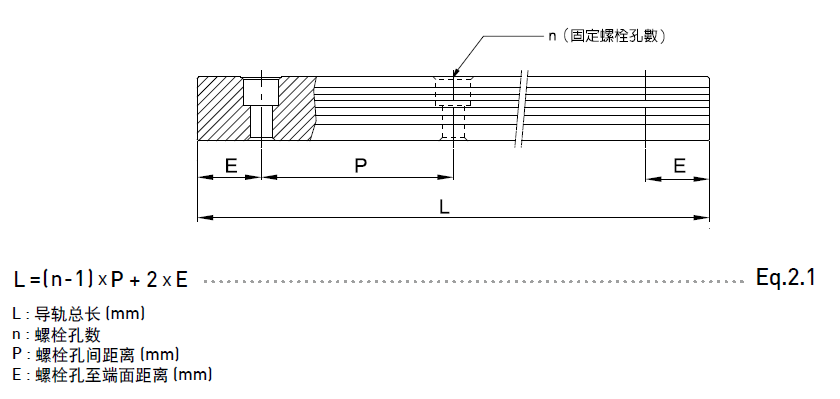 2. 標準端距最大長度是指左、右端距皆為標準端距之導軌最大長度。