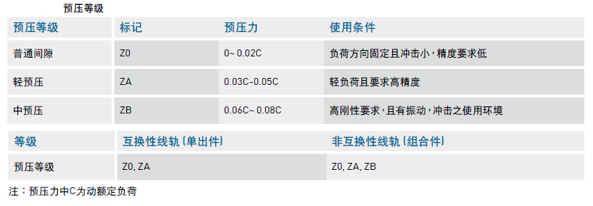 QW 系列直線導(dǎo)軌提供三種標(biāo)準(zhǔn)預(yù)壓,可依據(jù)用途選擇適當(dāng)預(yù)壓力。