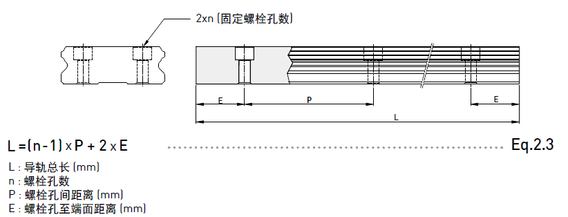 HIWIN直線導(dǎo)軌備有導(dǎo)軌標(biāo)準(zhǔn)長(zhǎng)度庫存供應(yīng)客戶需求。若客戶訂購(gòu)非標(biāo)準(zhǔn)長(zhǎng)度導(dǎo)軌時(shí),端面距離E的尺寸最好不要大于1/2P,防止因E的尺寸過大導(dǎo)致導(dǎo)軌裝配后端部的不穩(wěn)定,而降低直線導(dǎo)軌的精度。