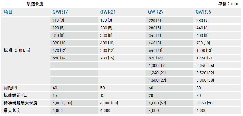 單支導(dǎo)軌標(biāo)準(zhǔn)長(zhǎng)度及最大長(zhǎng)度